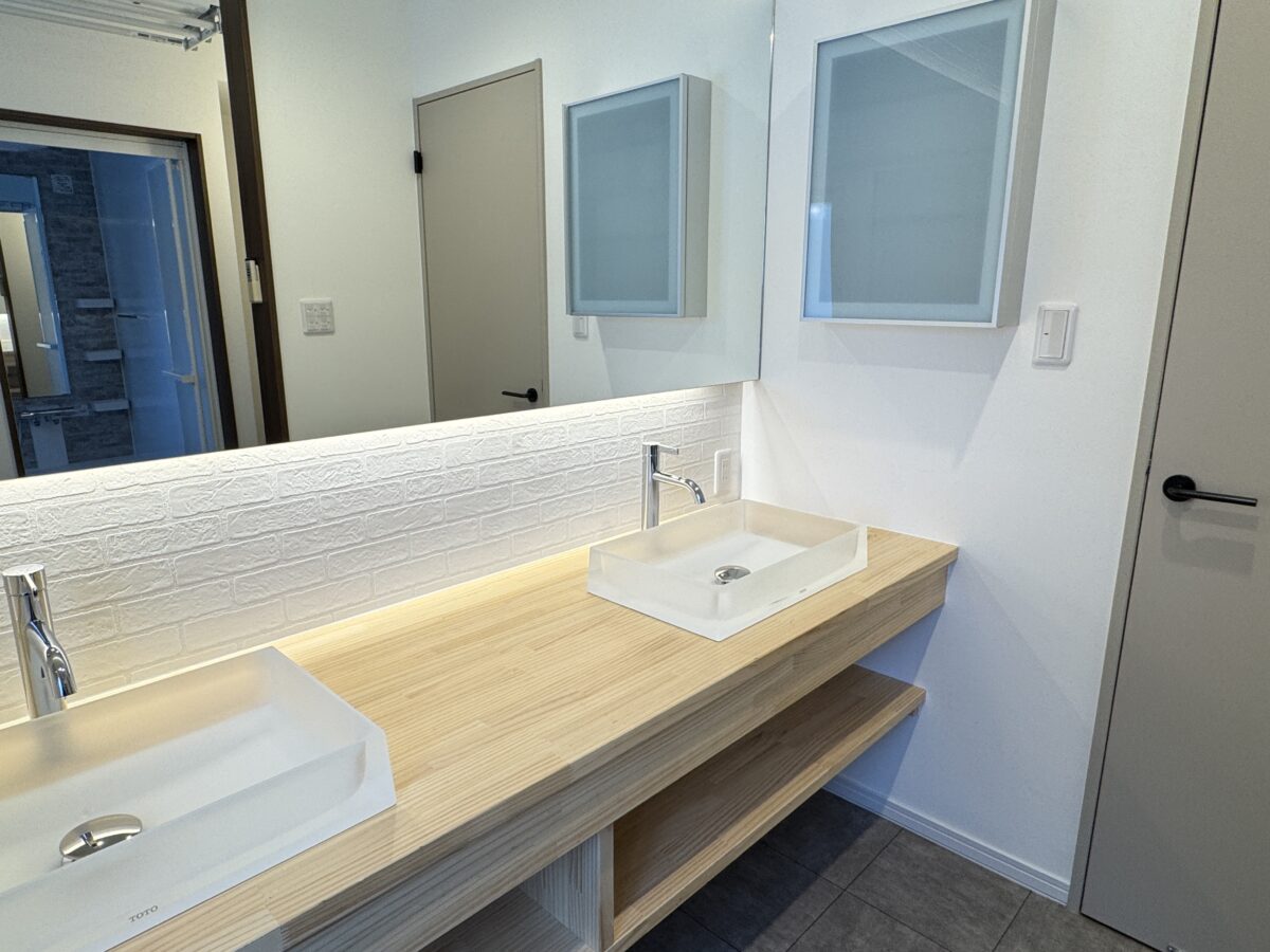 利便性の良い2ボウルの洗面と間接照明付きの大きな鏡はホテルライクな生活を演出。 外壁・屋根塗装済み。寝室洋室フローリング、トイレ・2階建具、クロスもすべて新品です。 浴室換気暖房乾燥機や電動の物干しなど、嬉しい設備が充実! |